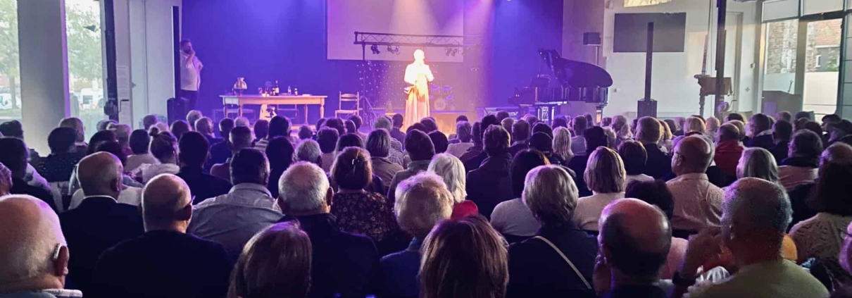 Luc De Vos is nu een pop, een marionet. En het was prachtig hoe een afgeladen volle afgebrande kerk in Waarschoot tot tweemaal toe kwam afgezakt om het mee te maken. Zus Nicole had poppenspeler Hendrik Devos, niets is toeval, tijdens de Gentse Feesten bezig gezien met het oeuvre van haar broer. Wat er gezegd wordt, hoe het gezegd wordt. De songkeuze. Ik reis door de nacht.